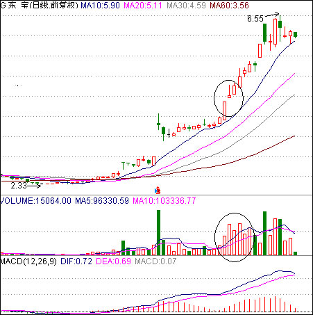 在缺口发生的当天或后一天若成交量特别大,而且趋势的未来似乎无法随交量而有大幅的变动时,这就可能是消耗性缺口啊,假如在缺口出现的后一天其收盘价停在缺口之边缘形成了一天行情的反转时,就更可确定这是消耗性缺口了。