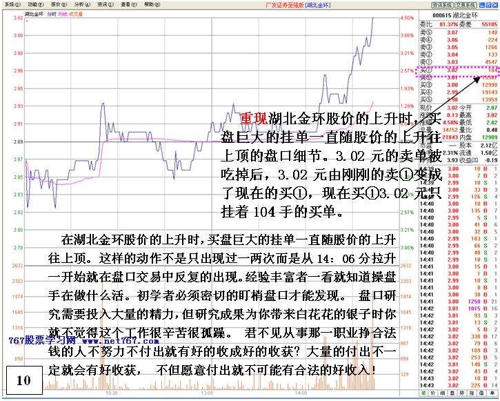 本课内容以今日000615 湖北金环实践盘口介绍主力操盘手常用的一种拉升操盘手法:堆单推高股价操纵法!